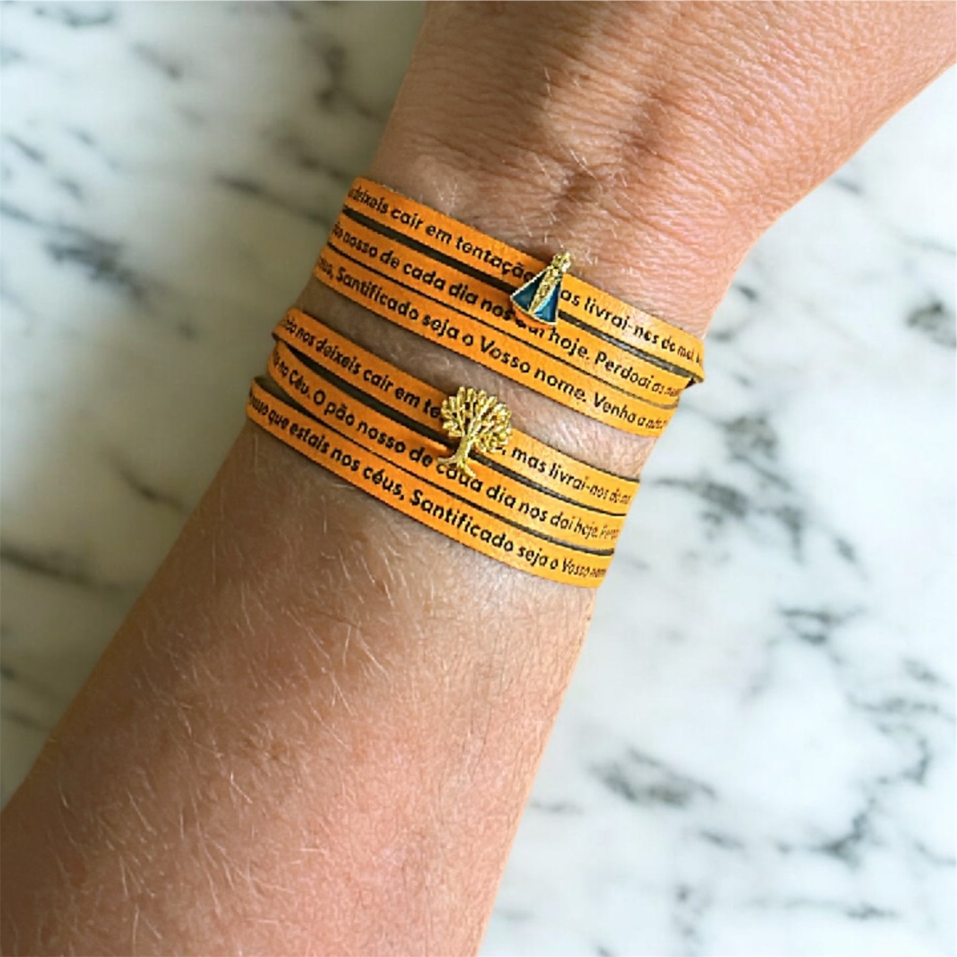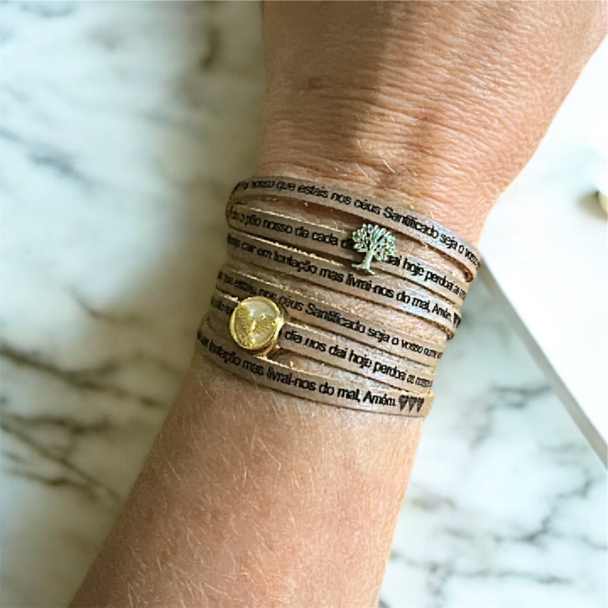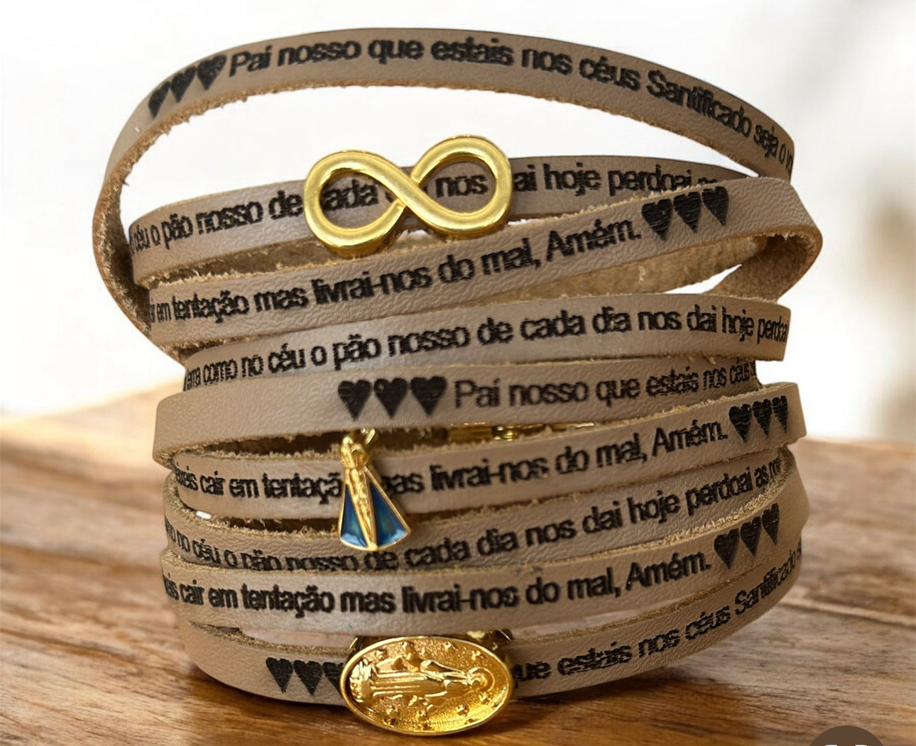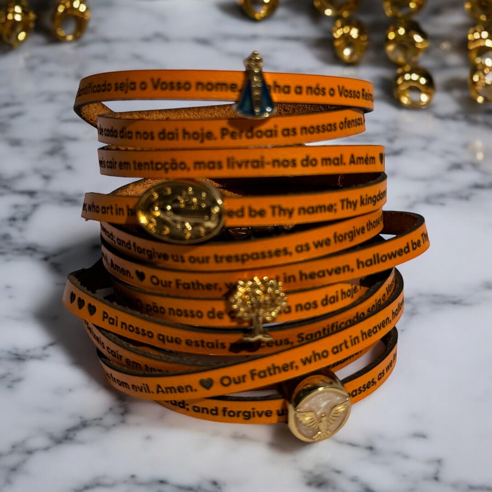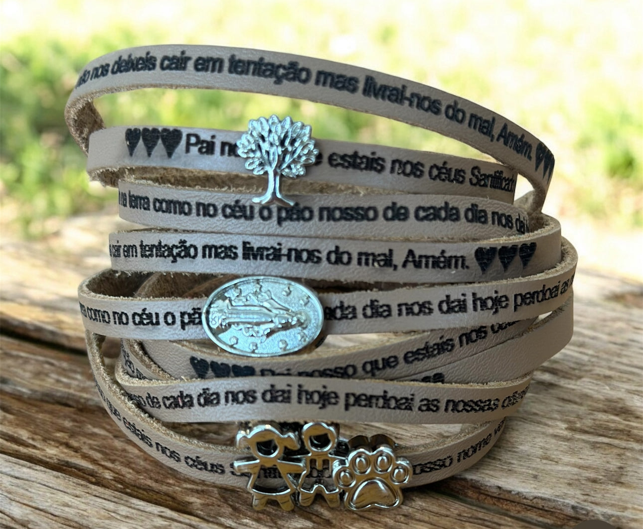 The Our Father prayer leather bracelet is an accessory that combines spirituality with style. Made from leather, it features the Our Father prayer engraved, offering a practical and discreet way to carry one of the most powerful and well-known prayers in Christianity.